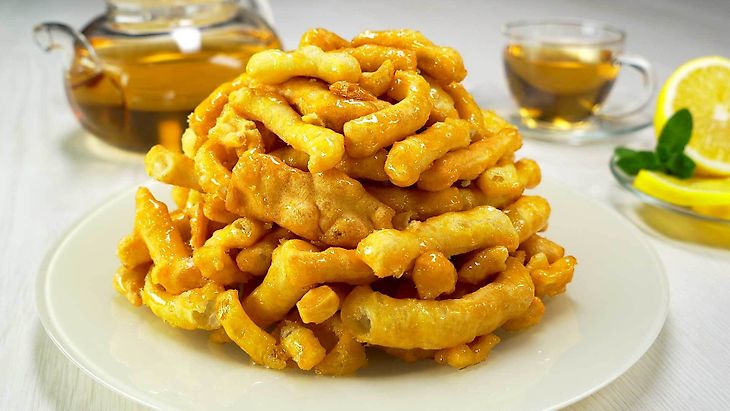 На вид блюдо кажется слишком замысловатым, но в приготовлении нет никакой сложности, хотя процесс достаточно трудоемкий и требующий внимания. Основной ингредиент мука, в которую добавляют яйцо, соль, сахар и сливочное масло, чтобы получилось тесто. Затем тесто режут и скатывают в тонкие длинные макаронины. Их нужно обжарить в растительном и сливочном масле, причем его нужно не жалеть, тесто должно быть покрыто сверху.