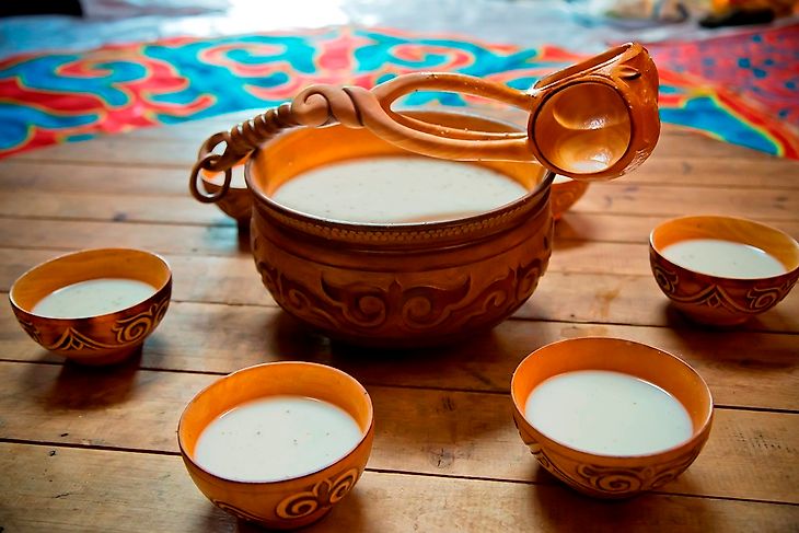 Еще один кисломолочный напиток, ставший популярным в Казахстане — тан. Изначально его готовили жители Кавказа, само слово «тан» переводится с армянского языка как «влажная пища». Готовится тан из коровьего или козьего молока с добавлением закваски, воды, соли. Тан хорошо помогает не только в жару, но и в том случае, если накануне человек перебрал со спиртными напитками. Кумыс, айран, тан можно привести с собой, но только в заводских упаковках. Правда, в наших широтах эти напитки тоже продаются. Но вот попробовать настоящие можно только на розлив.