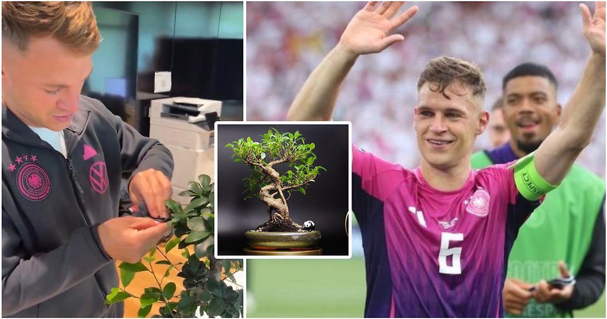 За бонсай сборной Германии отвечает Йозуа Киммих. Давид Раум поделился видео, в котором полузащитник «Баварии» тщательно протирает листья растения.