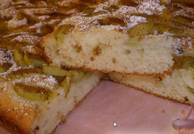 Способ приготовления. Очистить ревень и порезать на мелкие брусочки. Положить в миску, засыпать сахаром. Взять яйца, кефир, растительное масло, изюм, ванильный сахар и все смешать, а затем тщательно взбить. Муку просеять и добавить в нее цедру лимона и корицу с сахаром. Все смешать и выложить на противень. По диаметру выложить брусочки ревеня, а в центр можно положить любой фрукт, например грушу. Выпекать в разогретой духовке при температуре 180 градусов. Сверху пирог посыпать сахарной пудрой с корицей. Подавать с компотом из ревеня, чаем или другим напитком.