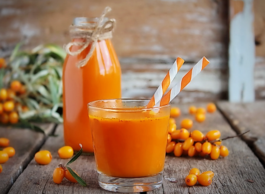 - сок – облепиху пропускают через соковыжималку и разливают по бутылкам, в сок можно добавить сахар или мед;