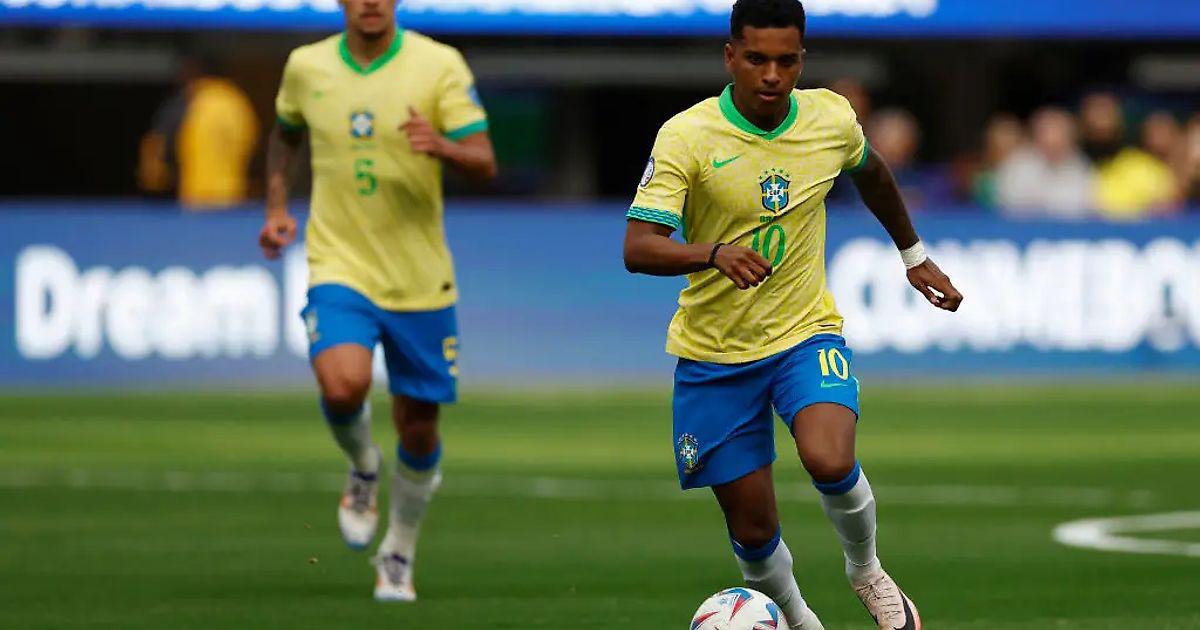 Сборная Бразилии: Алиссон, Данило, Милитао, Маркиньос, Арана, Гимараеш, Гомес, Пакета, Рафинья, Родриго, Винисиус.