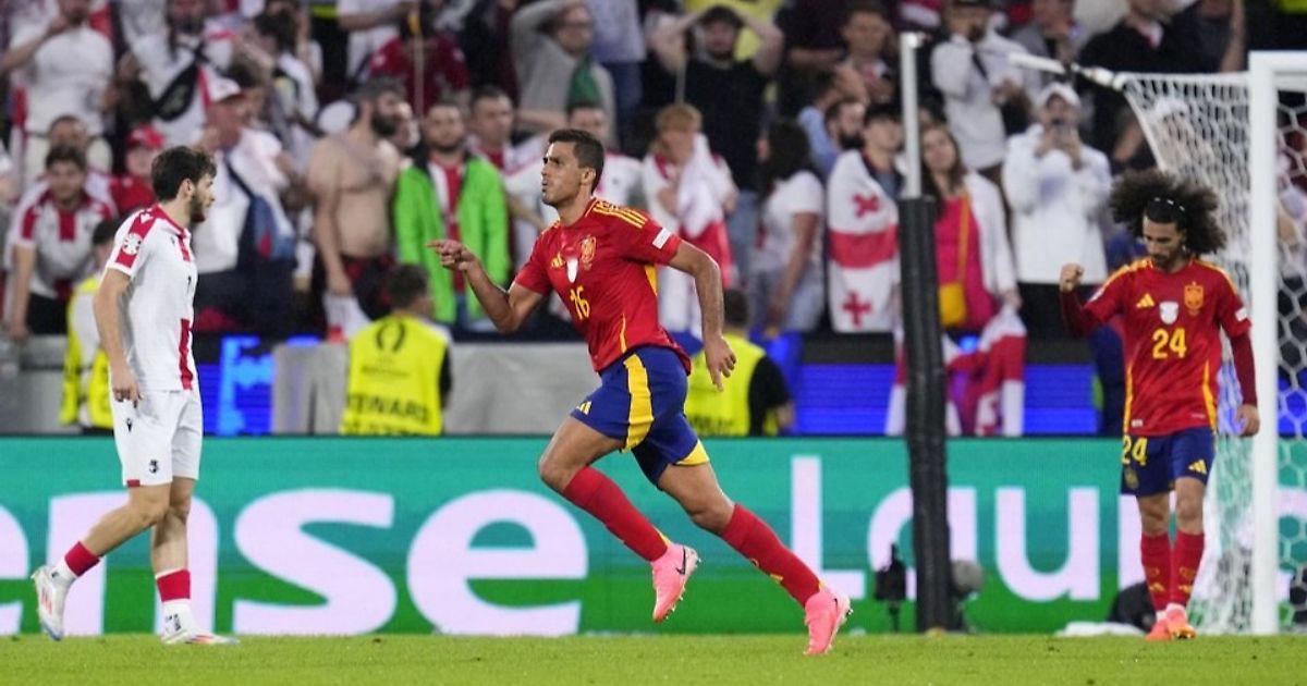 Показательно, что перед своим голом Родри сначала отдал на правый фланг на Ямаля, а затем на левый фланг на Нико Уильямса – Грузия, которая вжалась в свою штрафную и смещалась по мячу оставила пространство для Родри в опорной и он наказал дальним ударом: