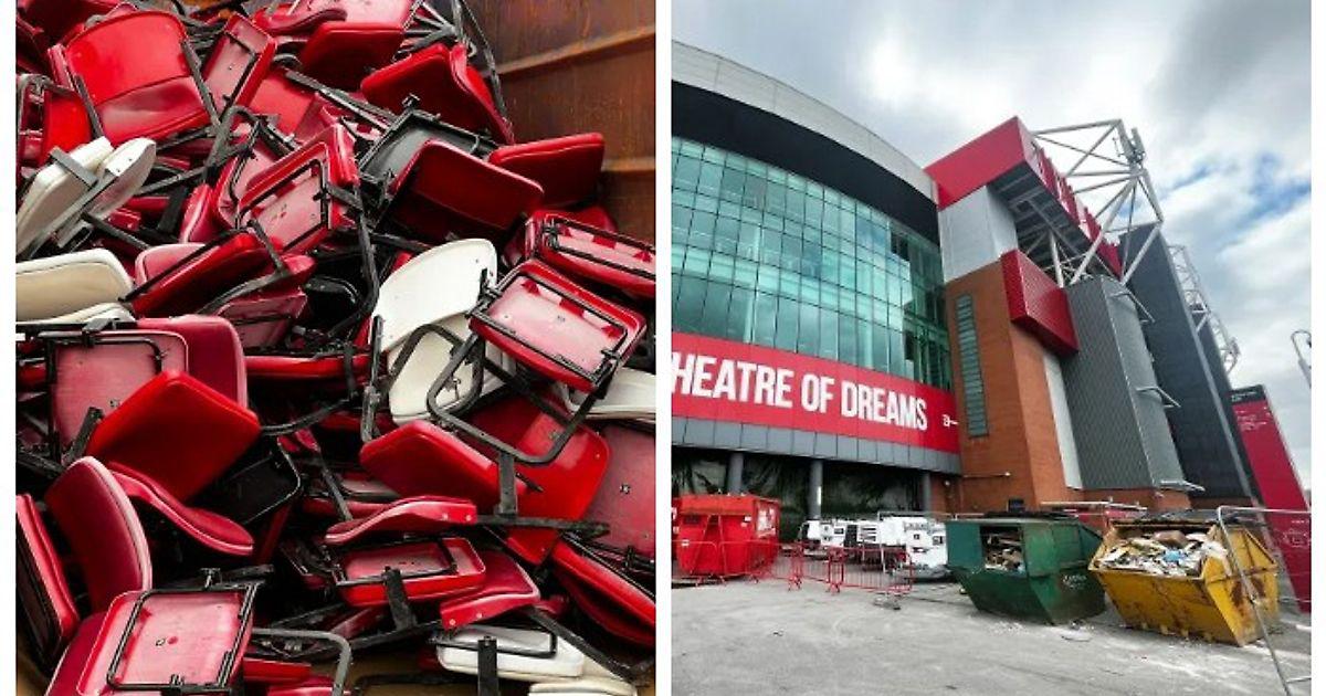 На «Олд Траффорд» ведутся строительные работы, старые сиденья отправились на свалку.
