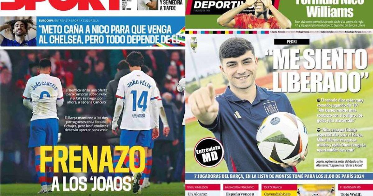 4️⃣ Sport.es: Сохранить Феликса и Канселу — не приоритетно для «Барселоны». За трансфер Феликса плотно взялась «Бенфика», а «Сити» отказывается отдавать Канселу в аренду — «горожане» согласны только на продажу, и за солидную цену.
