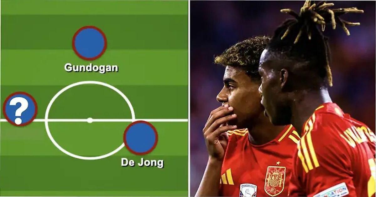 Что ж, давайте пофантазируем о том, как Ханси Флик мог бы использовать Нико в своем составе. Многие хотели бы видеть Ламина Ямаля и Нико в «основе» «Барсы». Их партнерство отлично работает в национальной сборной. Давайте также представим, что каталонцы преуспеют в борьбе за Микеля Мерино. Вот как тогда выглядел бы стартовый состав команды:
