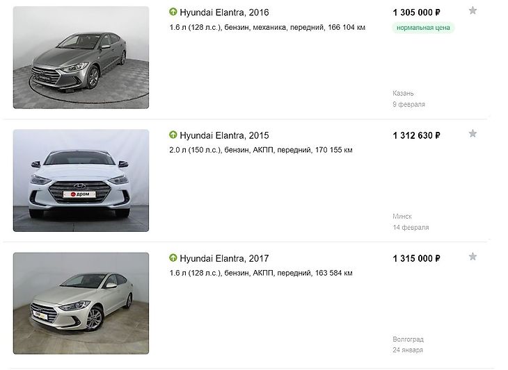 Выгоднее будет поиска Hyundai Elantra с 2,0-литровым двигателем. Учитывая, что оба мотора обладают схожим ресурсом и одинаковой стоимостью ремонта, то искать базовый двигатель не обязательно. На рынке подержанных авто преобладают дорестайлинговые экземпляры. Больше предложений по авто с АКП. Стоимость седана от 1 300 000 рублей.