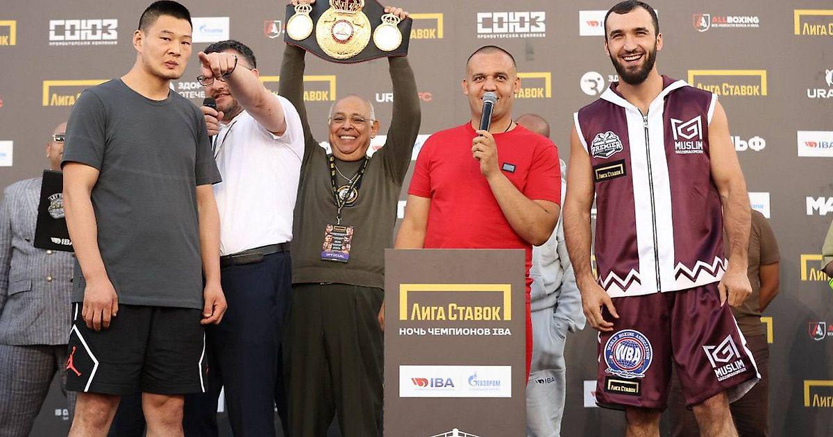 Российские боксёры Муслим Гаджимагомедов и Альберт Батыргазиев успешно прошли процедуру взвешивания накануне своих титульных боев по версии WBA в рамках грандиозного турнира «Лига Ставок. Ночь чемпионов IBA» в подмосковном Серпухове.
