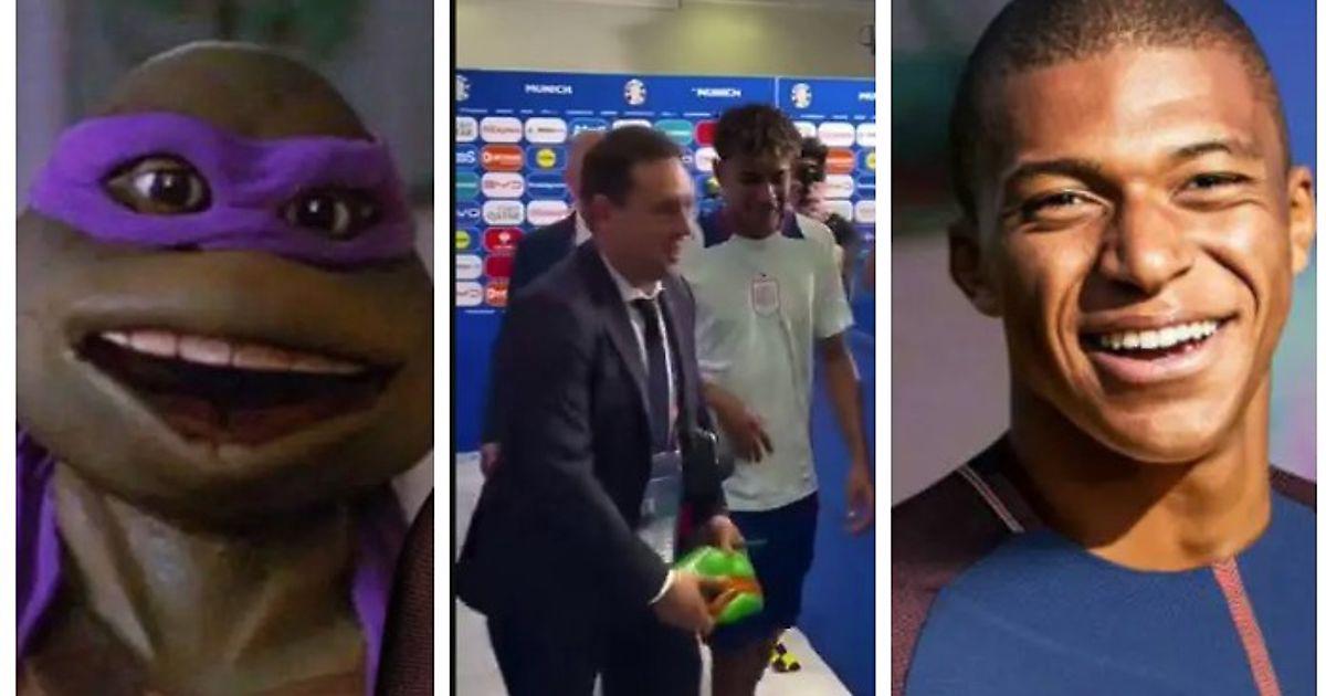 Ламин Ямаль принес маску черепашки-ниндзя в микст-зону после того, как Испания обыграла Францию в полуфинале Евро.