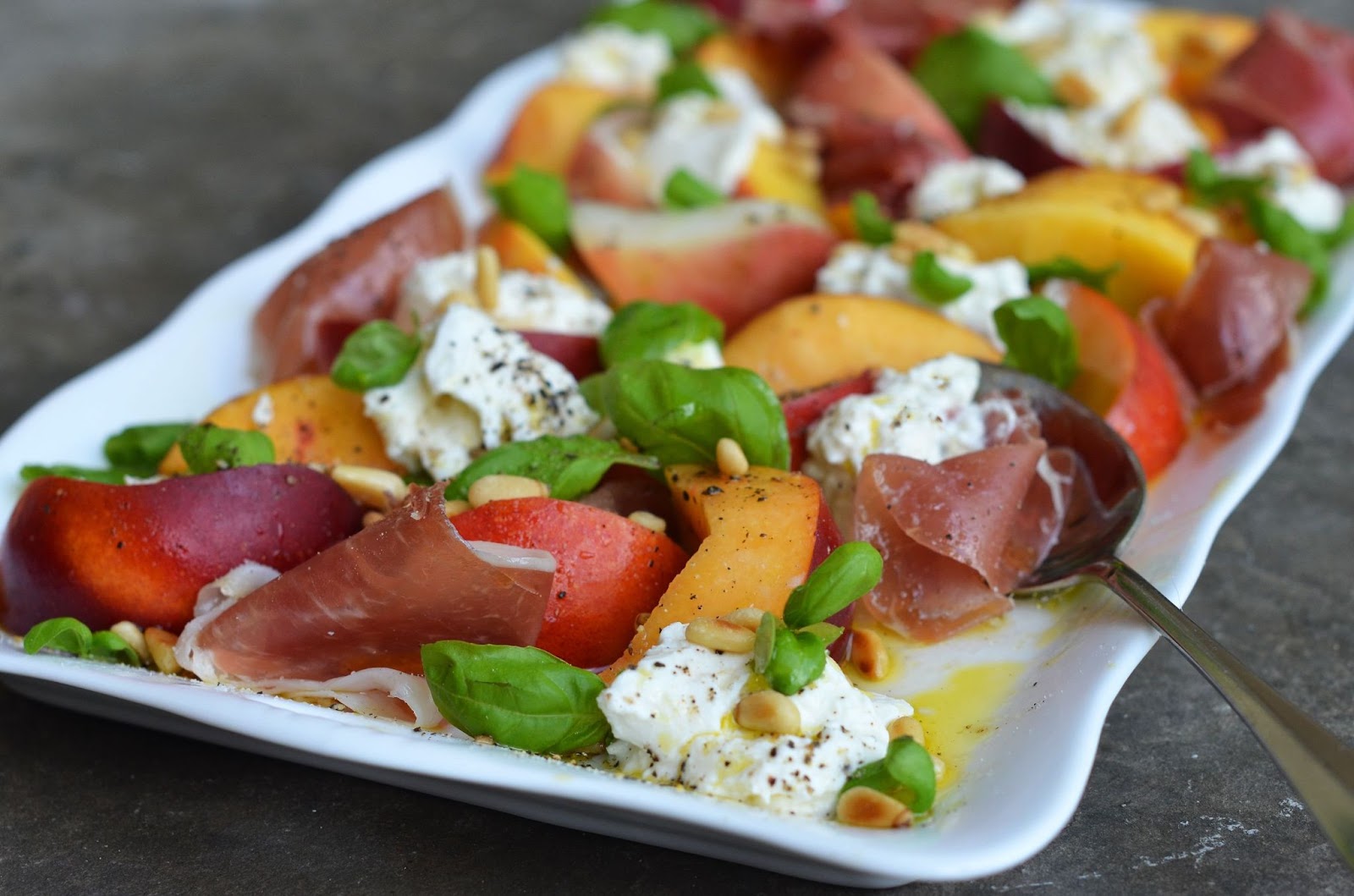 Нарежьте спелые персики тонкими дольками, выложите их на тарелку вместе с листьями рукколы и тонко нарезанным прошутто. Сбрызните оливковым маслом и бальзамическим уксусом, посыпьте измельченными фисташками. Этот салат удивит гостей неожиданным сочетанием вкусов и текстур.