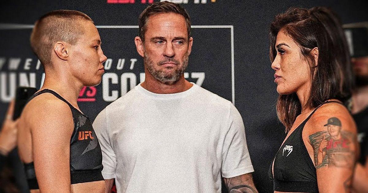 Женский наилегчайший вес: №6 Роуз Намаюнас – №11 Трэйси Кортез (главный бой вечера) В последнее время Роуз не показывает выдающихся результатов. Большинство её поединков были скучными, и почти все из них доходили до решения судей. Своими финишерскими навыками не славится и Трэйси. Ход поединка довольно легко предсказать. Намаюнас будет бегать по октагону и пытаться отстреливаться в стойке. Кортез, в свою очередь, будет преследовать её и пытаться перевести в партер, а там просто будет лежать и обозначать активность. Досрочная победа здесь практически невозможна.