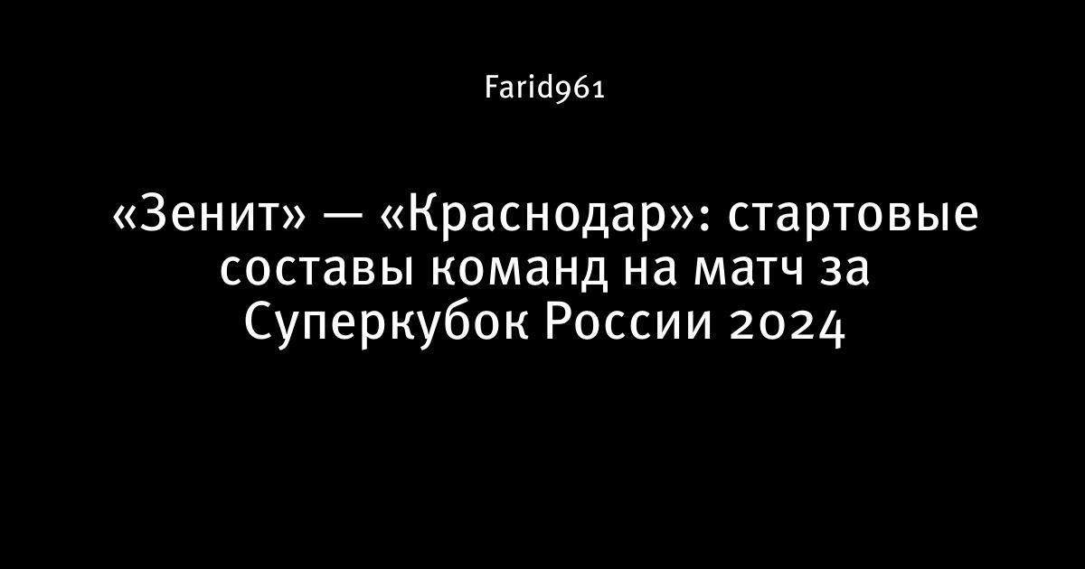 «Зенит» — «Краснодар»: стартовые составы команд на матч за Суперкубок России 2024