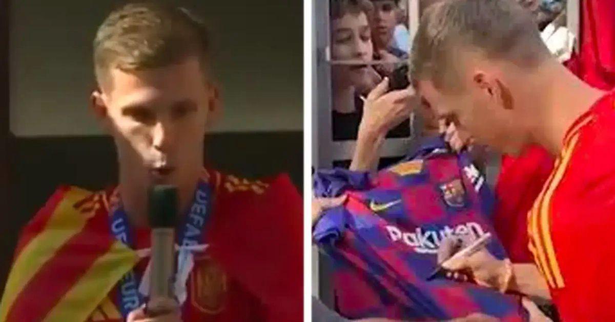 Дани Ольмо во время раздачи автографов фанатам подписать футболку «Барселоны»!