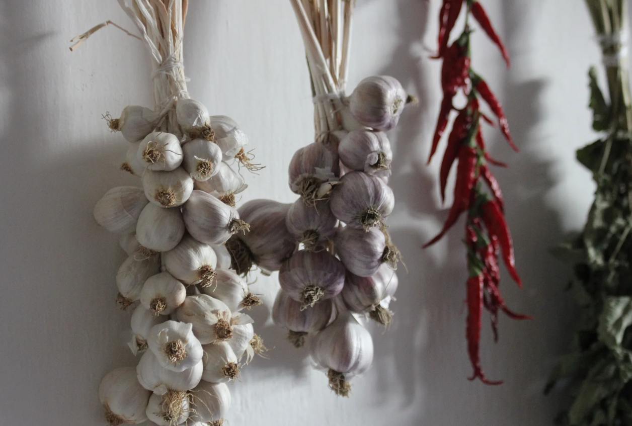 Традиционно чеснок хранят в виде косичек, в которые вплетают 15-30 головок. Их можно подвесить в кладовке или подвале. Оптимальная температура хранения не выше 3-4 градусов тепла и не ниже 5 градусов мороза. Собранный чеснок нельзя сразу отправлять на хранение, он должен полежать как минимум неделю в сухом, темном и хорошо проветриваемом помещении. Важно защитить культуру от влаги, так как она способна спровоцировать гниение и образование плесени. Перед формированием «косичек» важно перебрать урожай, убрав в сторону чеснок с признаками гниения, плесени и повреждениями.
