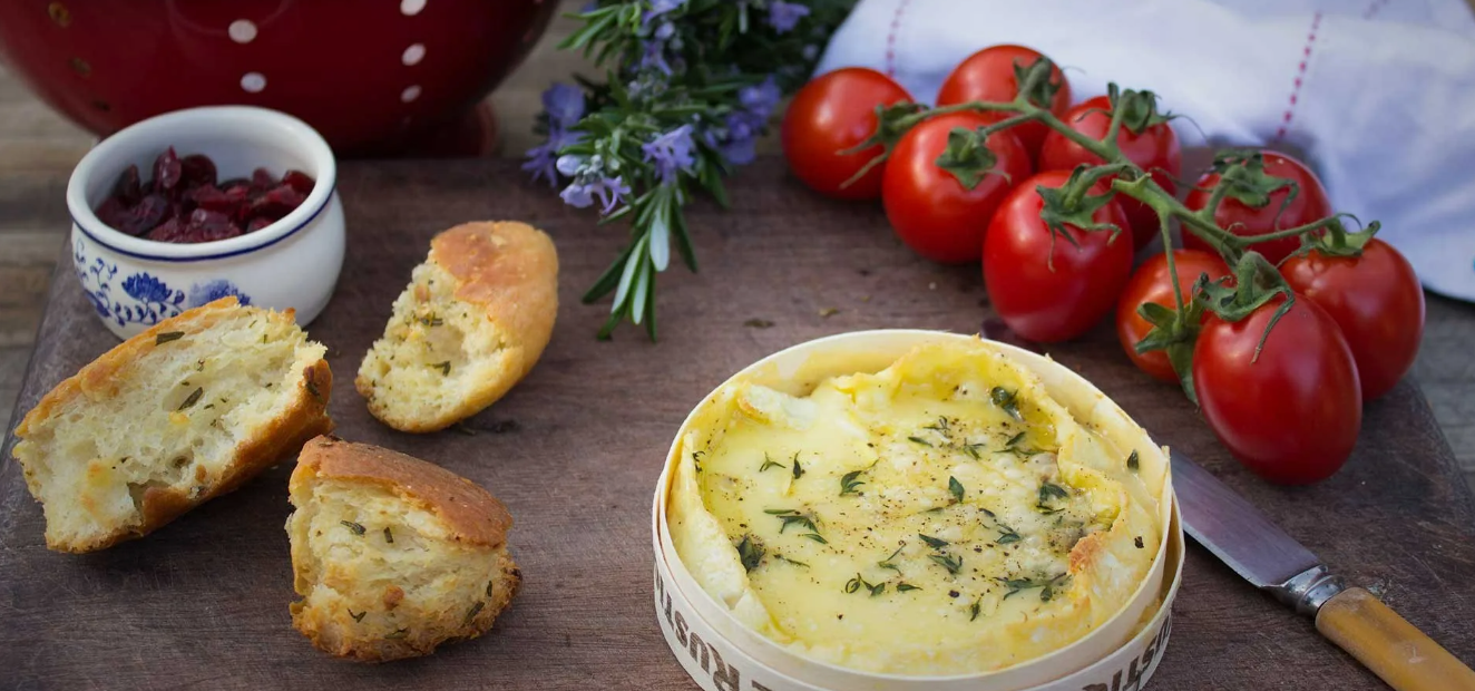 Необычный способ приготовления мягкого сыра с белой плесенью. У камамбера довольно сильный аромат, плотная корочка и нежная мякоть. Под воздействием температуры аромат становится менее выраженным, корочка мягче, а мякоть более тягучей.