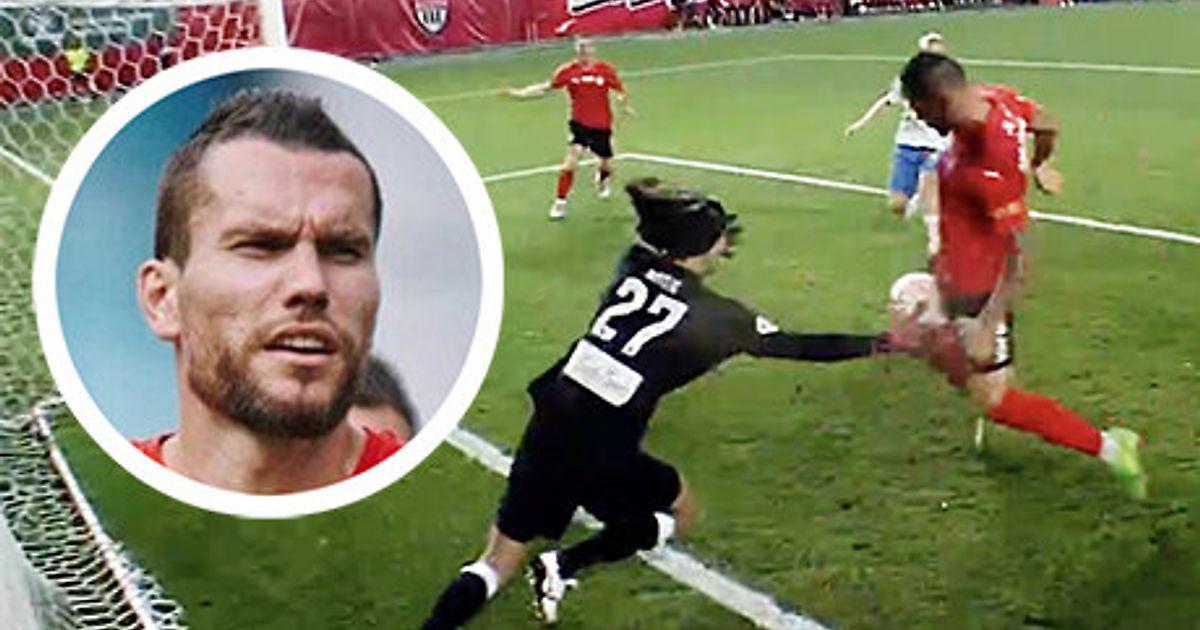 В конце первого тайма, уже при 0:1, Хетаг Хосонов пробил в штангу.