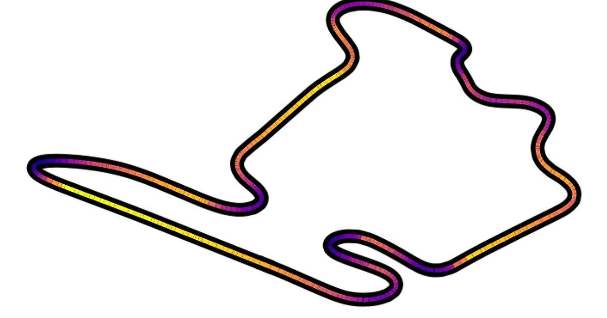 Визуализируем распределение скорости Джорджа Расселла, установившего быстрейший круг на Гран-при Венгрии, на этом самом круге.