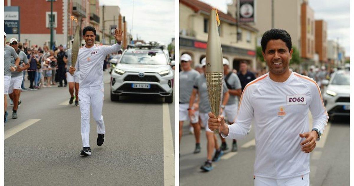 В сопровождении большого количества парижан президент «ПСЖ» Нассер Аль-Хелайфи пронес олимпийский огонь по улицам Виньё-сюр-Сен (коммуна в южном пригороде Парижа). После забега на 500 метров Аль-Хелайфи передал факел Мари-Роланде Биро, президенту местного клуба дзюдо. Через несколько дней 26 спортсменов «Пари Сен-Жермен» будут защищать цвета десяти разных стран.