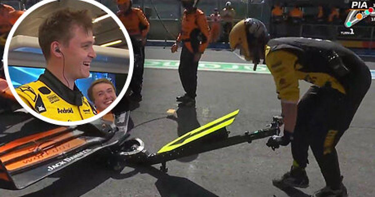 Пиастри едва не снес механика на пит-стопе: герой с домкратом спасал подиум «Макларена»!