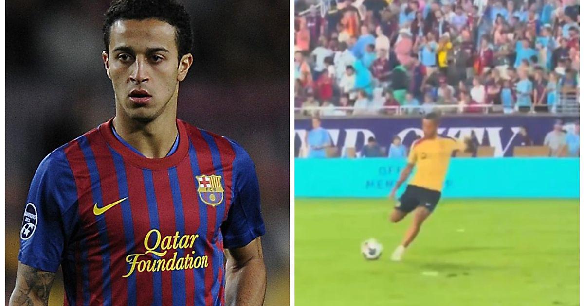 Камеры клубного телеканала сняли, как Тиаго Алькантара перед товарищеским матчем против «Манчестер Сити» разминает игроков каталонского клуба. Его скиллы точно никуда не делись.