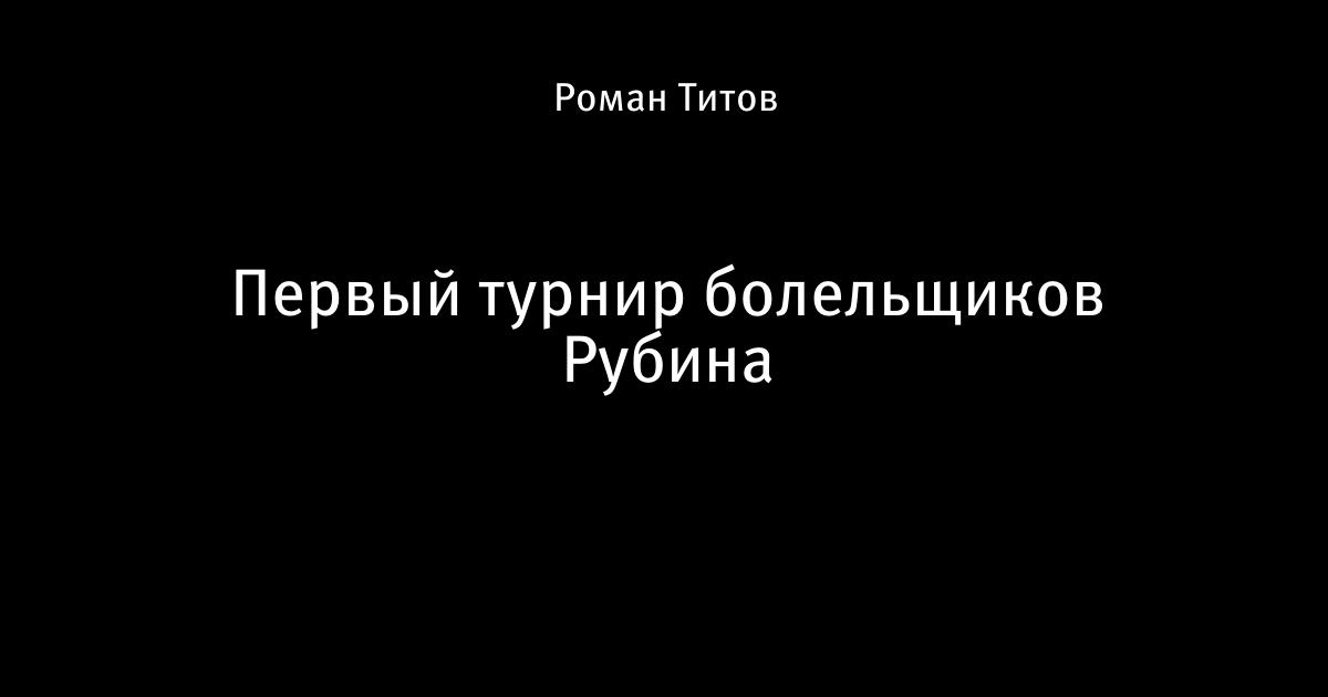 14 мая 2012, 18:50 Первый турнир болельщиков Рубина "> Автор Роман Титов Этот пост опубликован в блоге на Трибуне Sports.ru. Присоединяйтесь к крупнейшему сообществу спортивных болельщиков! Другие посты блога Футбольный клуб «Рубин» Рубин