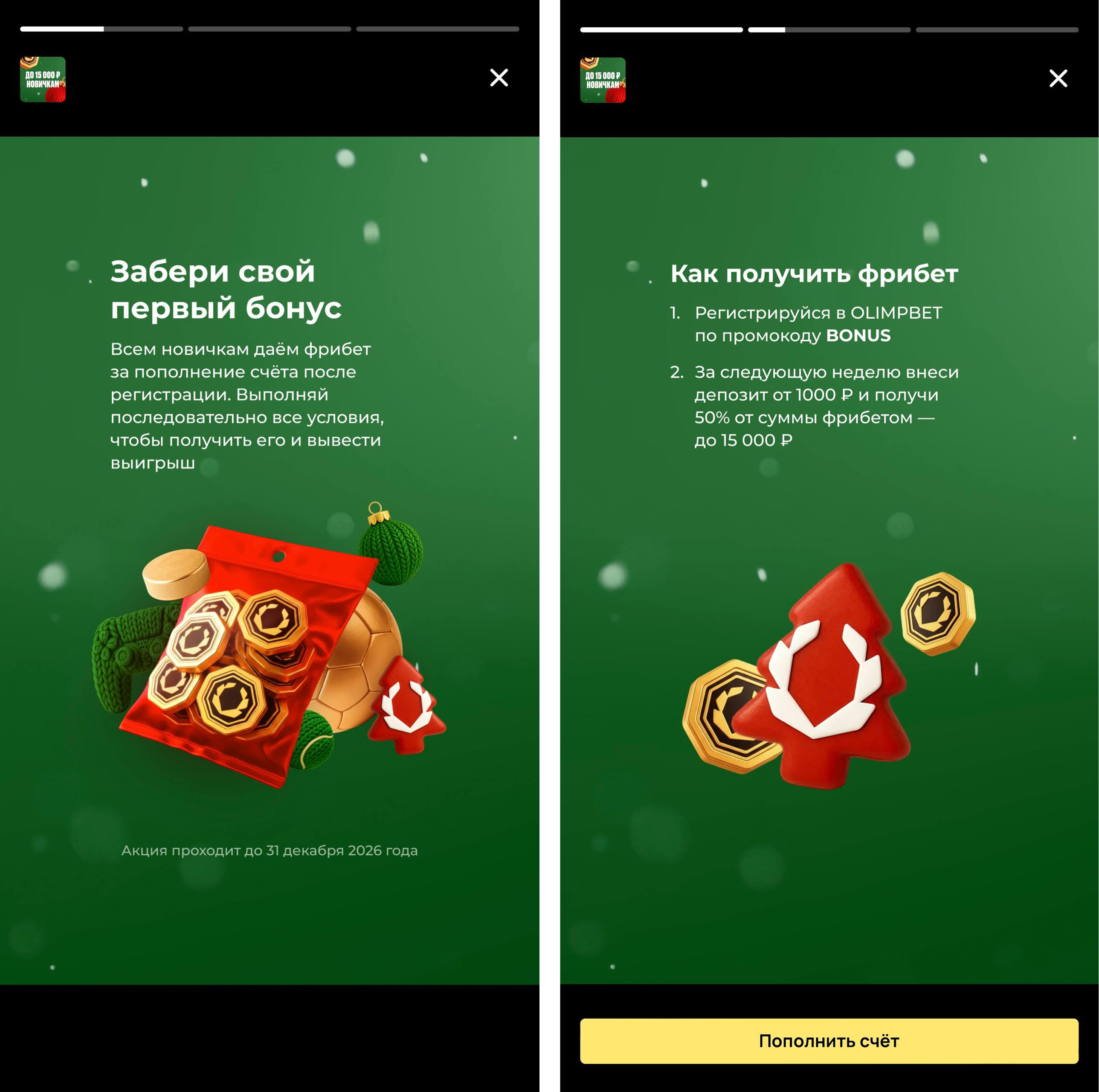 - После внесения депозита на игровой баланс будет начислен фрибет размером в 50% от суммы первого депозита, но не более 15 000 рублей.