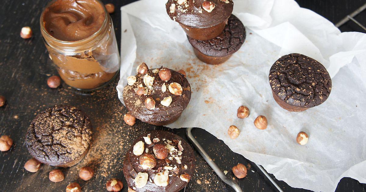 - Вылейте тесто в форму, заполняя углубления на три четверти. Сверху каждого маффина положите чайную ложку арахисовой пасты и сделайте волны ножом или зубочисткой.