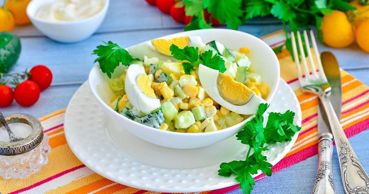 Салат с кукурузой, яйцами и огурцом: рецепт