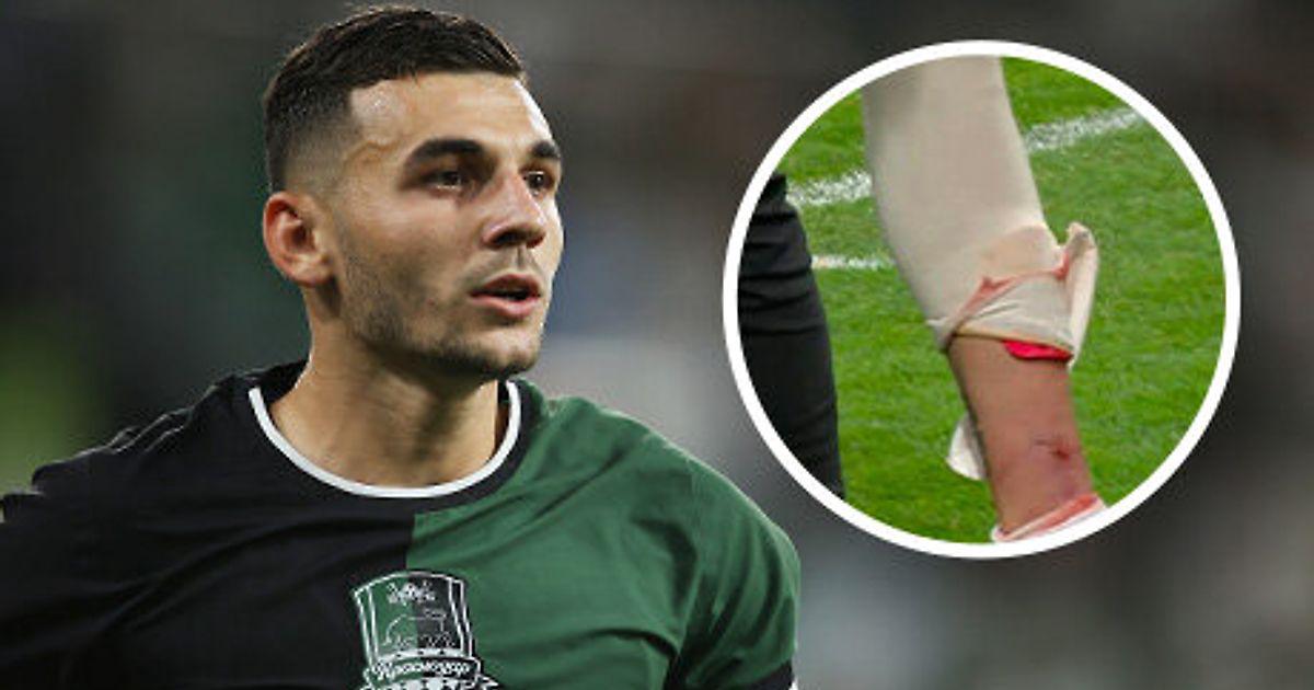 Кровавый фол Сперцяна против ЦСКА. Нет даже желтой, хотя нанес травму