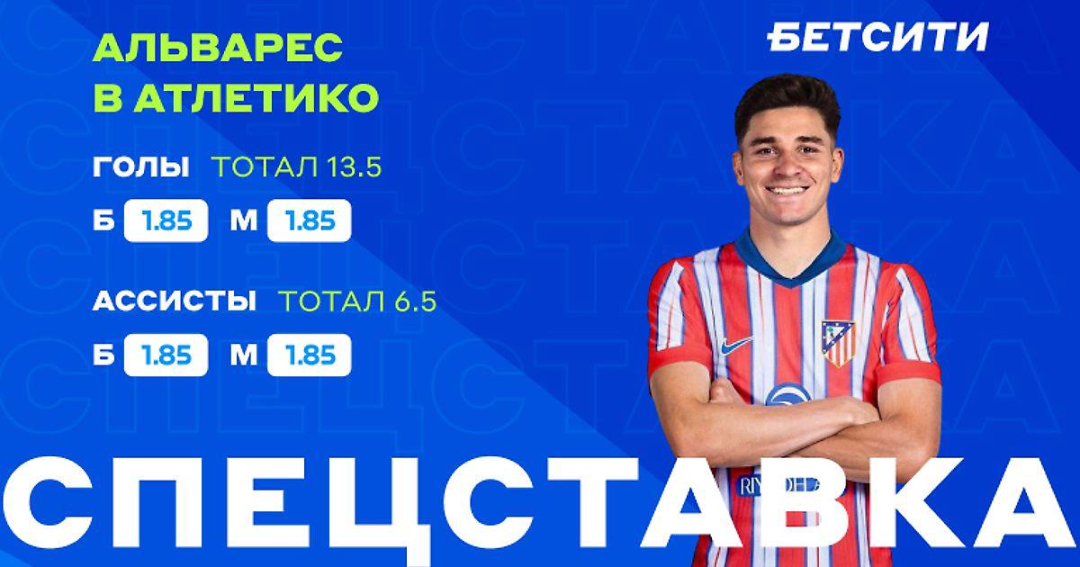 - Сколько забьет? В прошлом сезоне АПЛ Альварес принял участие в 36-ти матчах «Ман Сити» и забил 11 мячей. В «Атлетико» аргентинец должен стать основным игроком в линии атаки Симеоне, получать больше игрового времени и шансов. Наши аналитики предлагают тотал в 13.5 голов. Поставить на «больше» или «меньше» можно с одинаковым коэффициентом 1.85.