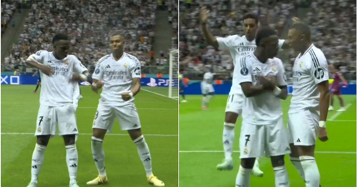 Килиан отпраздновал гол в своем фирменном стиле, а поддержали его - Винисиус и Родриго.
