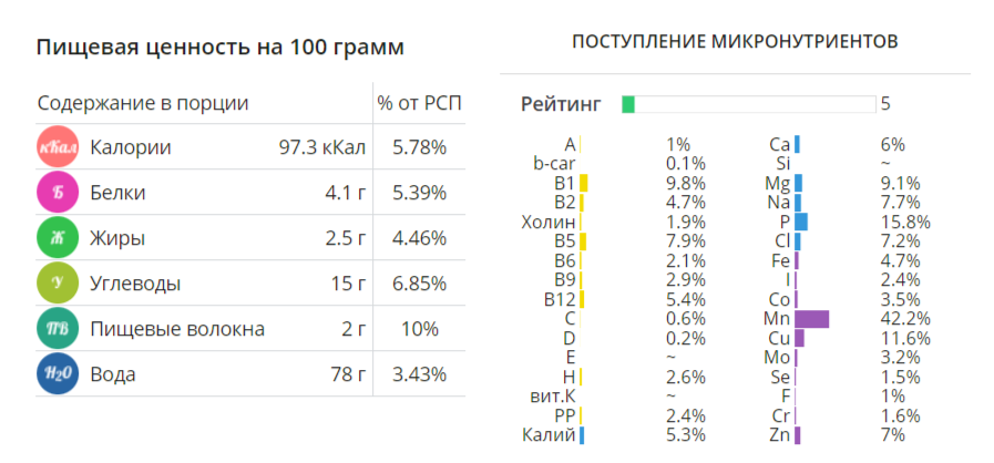 Калорийность овсяной каши и ее минеральный состав на фото ниже.