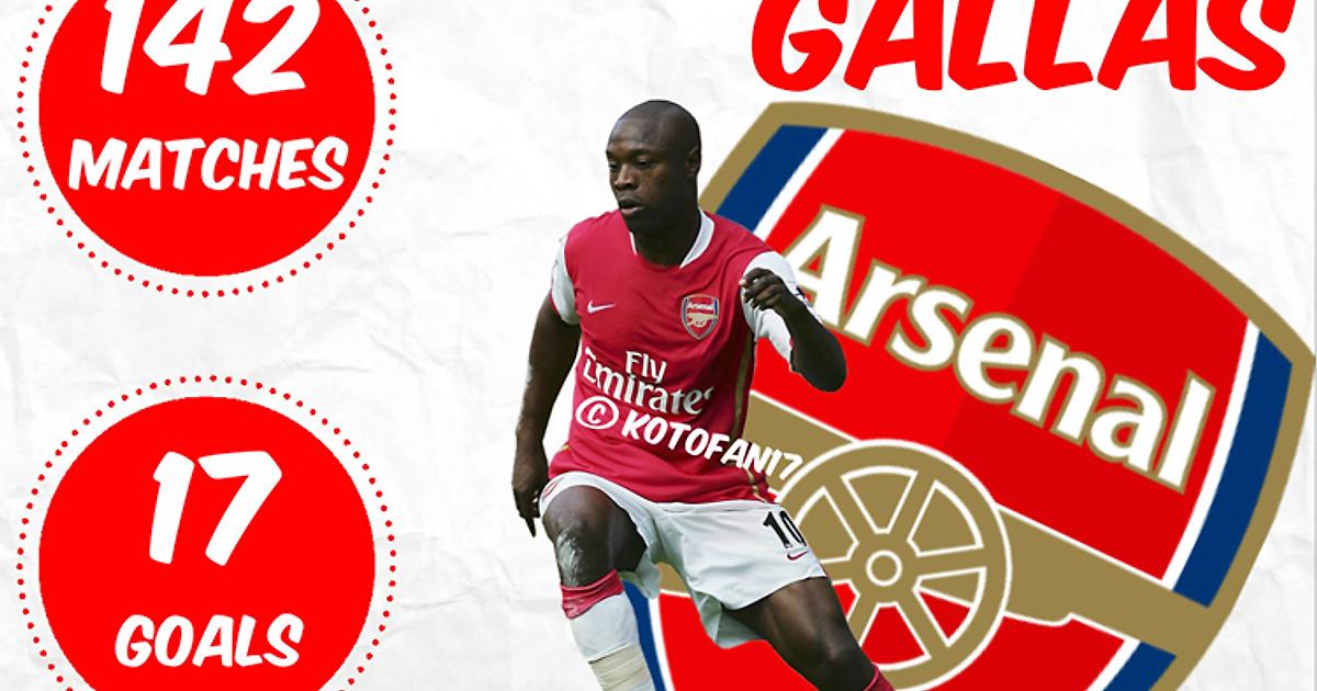 За Арсенал Галлас забил на 3 мяча больше, чем за челси, хотя за синих провёл на 9 десятков матчей больше, чем за Канониров.