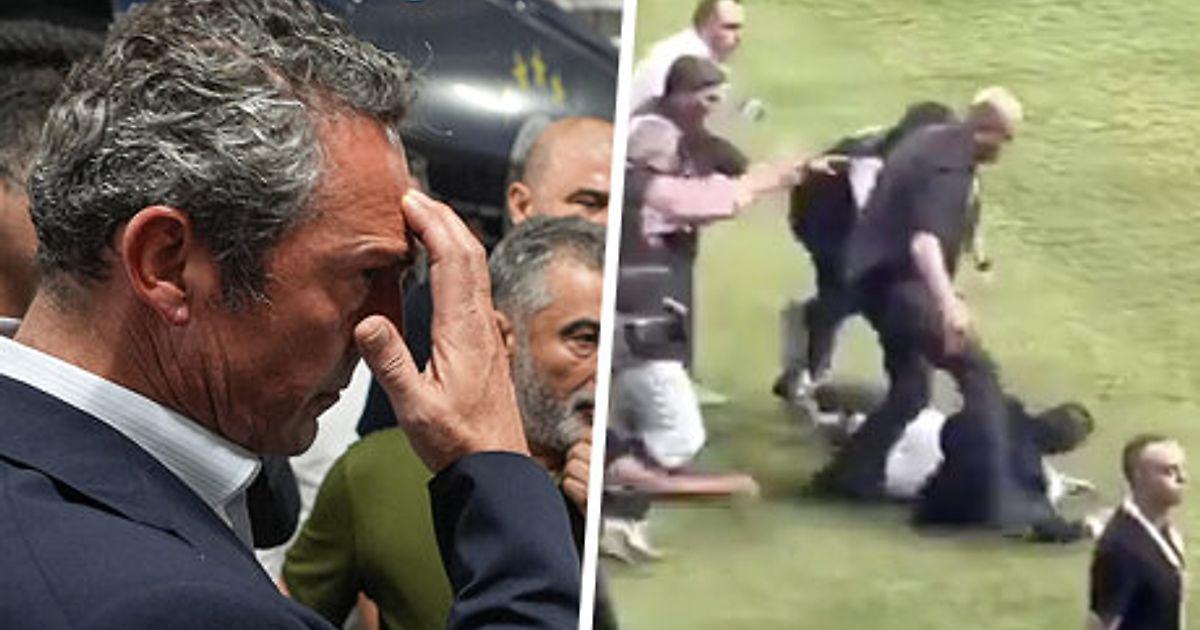 Сразу после один из сотрудников «Гезтепе» толкнул его: президент «Фенербахче» рухнул на газон.