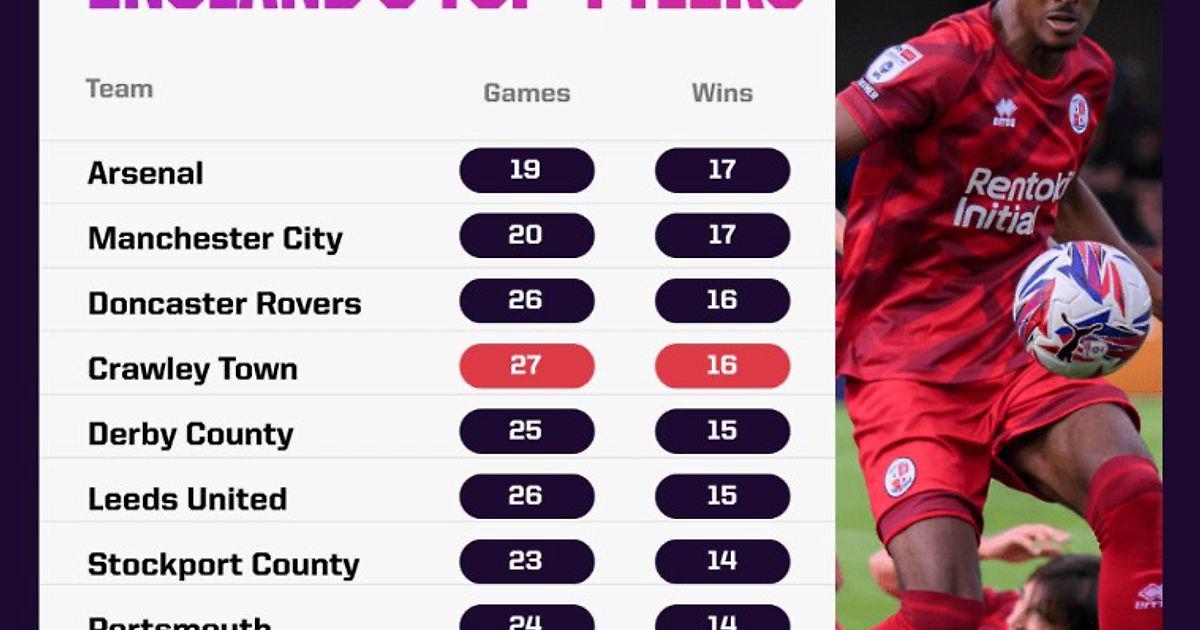В 2024-2025 только «Арсенал» и «Манчестер Сити» оба выиграли больше матчей, чем «Кроули» (16) в четырех высших турнирах Англии, включая три победы в плей-офф Второй лиги в мае. Однако это не всегда было так радужно на стадионе «Бронфилд».