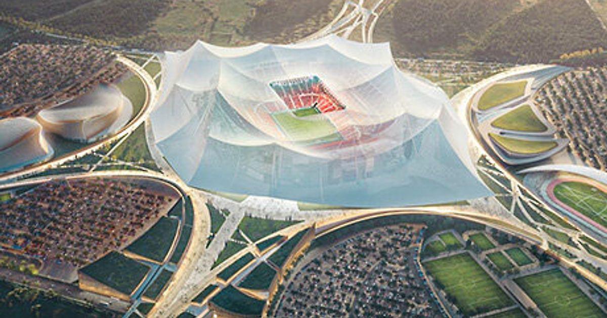 Стадион выглядит помпезным. Дизайн принадлежит компании Populous, которая также отвечает за проектирование нового стадиона «МЮ». Под проект выделяют 100 гектаров земли – большая часть уйдет под посадку садов и строительство спортивных площадок.