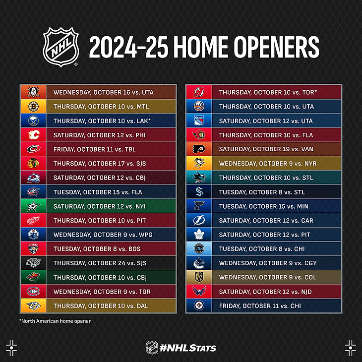 Расписание матчей регулярного сезона НХЛ 2024-2025