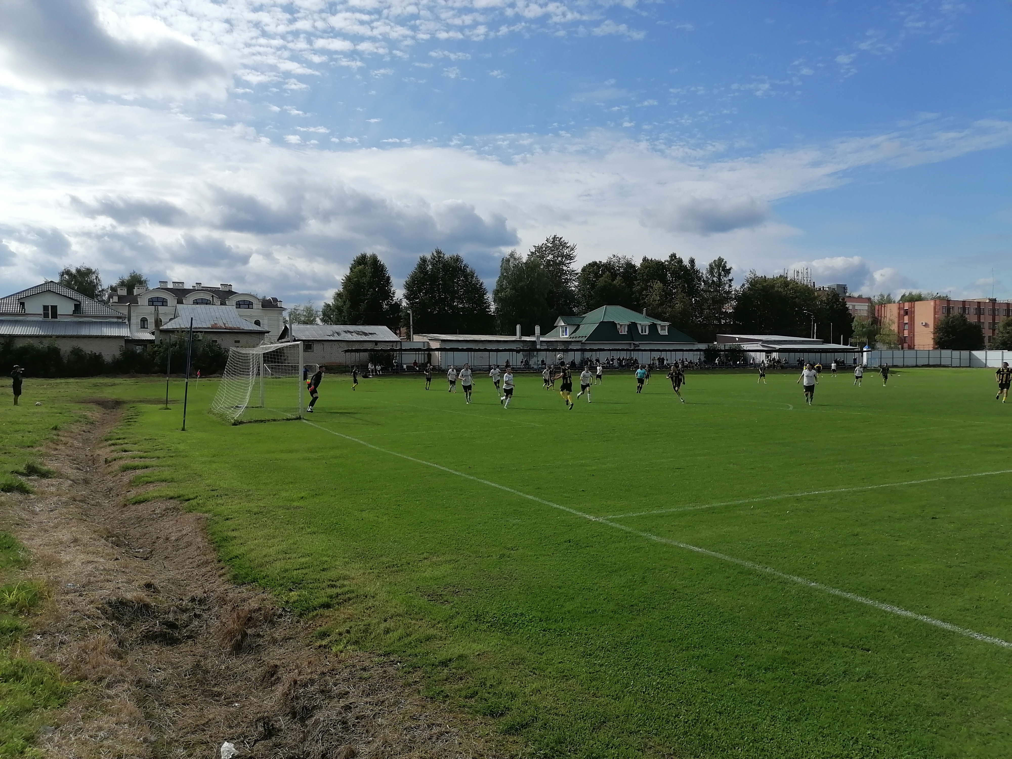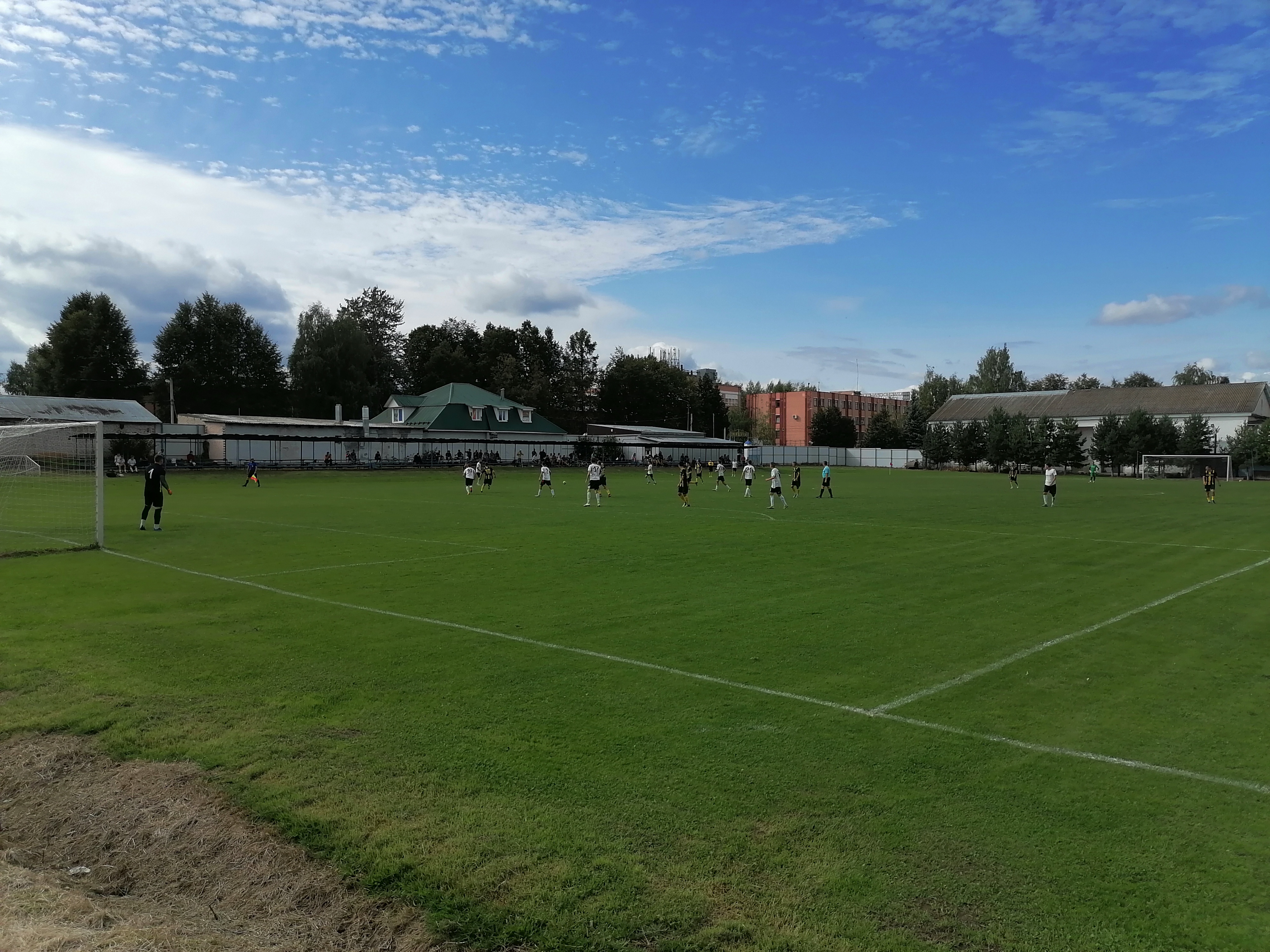 Больше в первом тайме голов не было. Самое время пройтись по поселку в поисках обеда и достопримечательностей. Сразу около стадиона Олимп находится пекарня. Взял два куска пиццы и морс, вышло двести двадцать рублей. Пицца для пекарни очень неплоха, советую🍕.