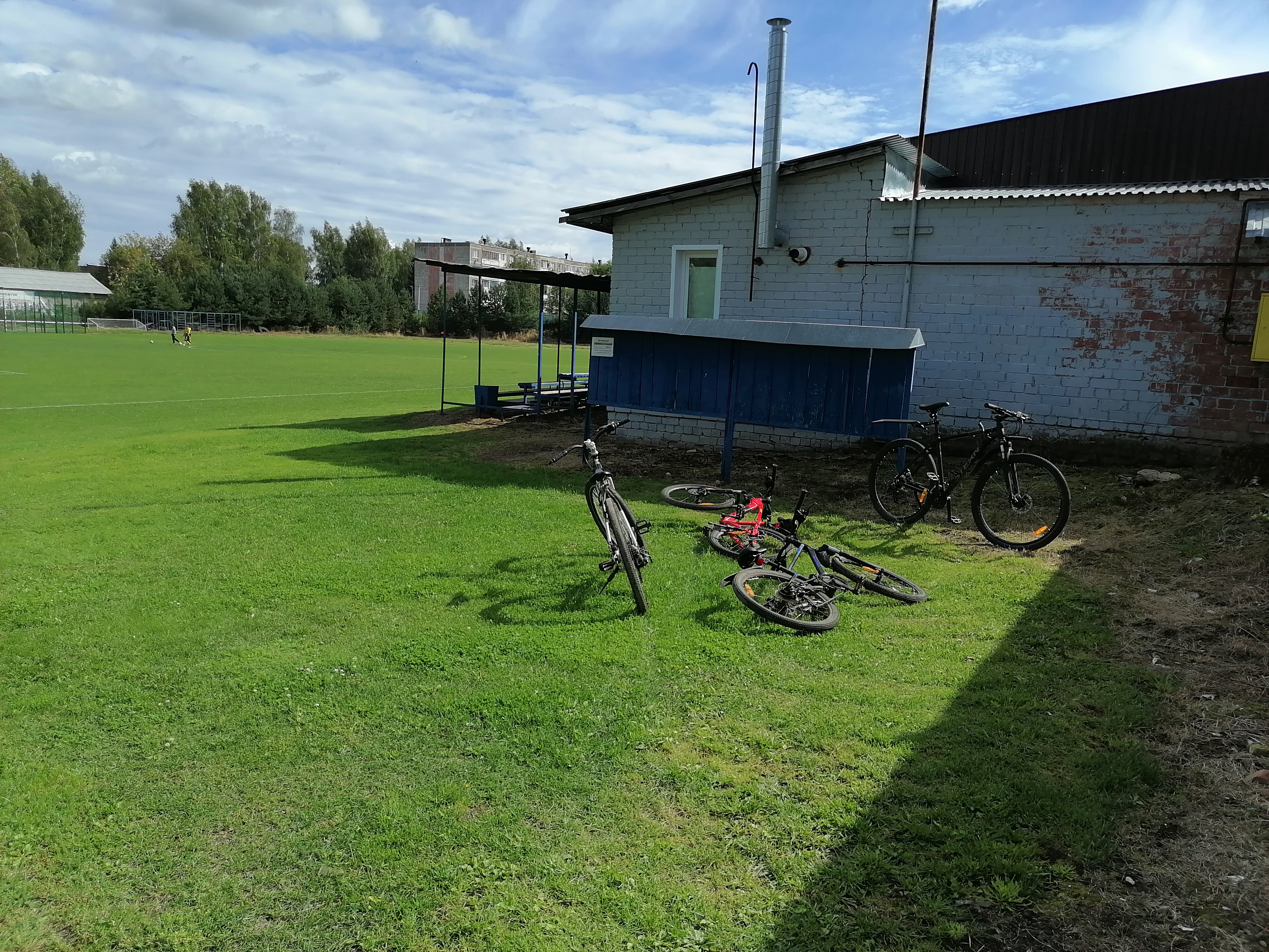 На стадионе одна трибуна в три ряда лавок, поле ровное без особых кочек и проплешин, натуральный газон⛳.