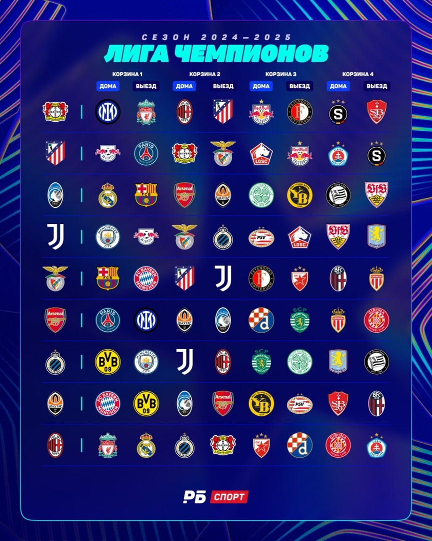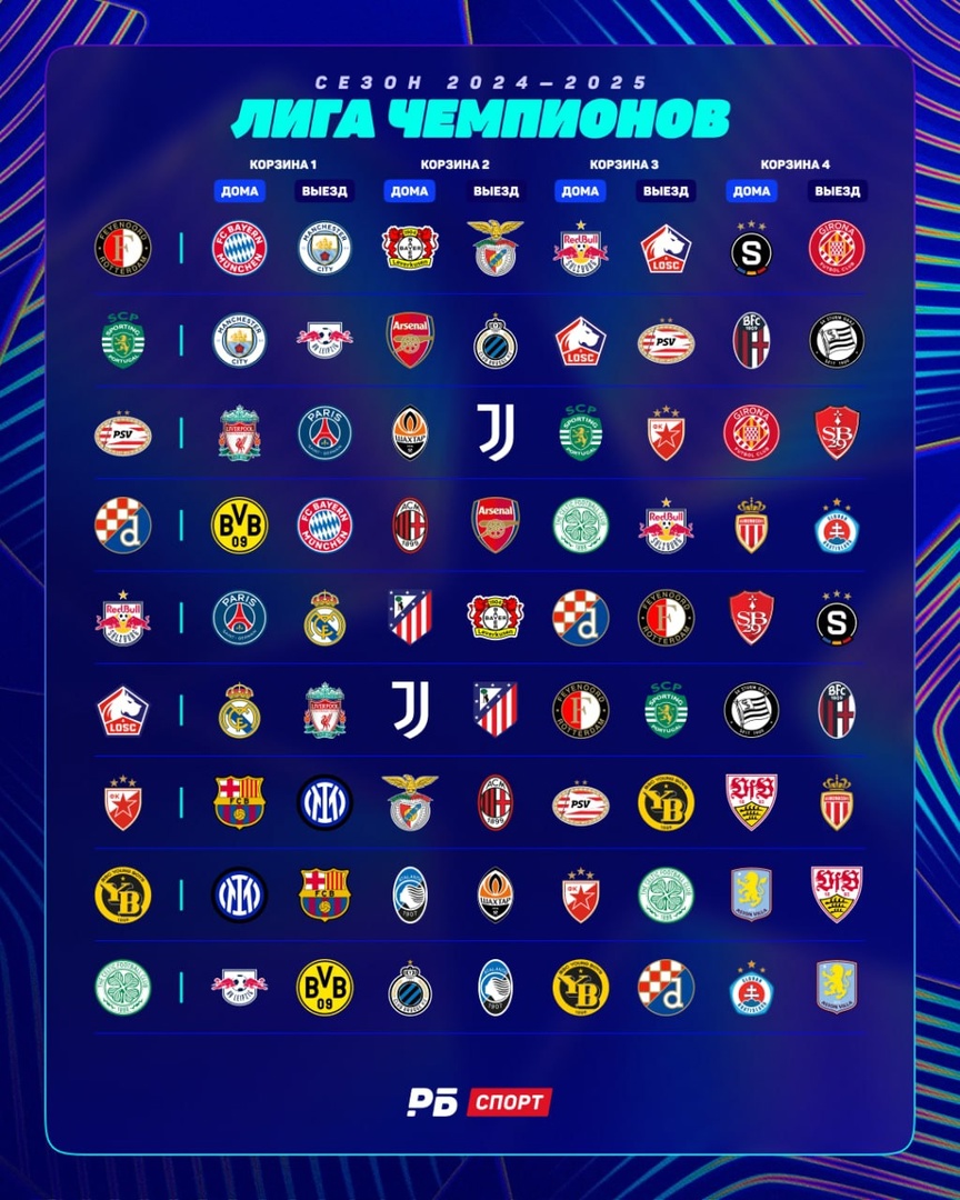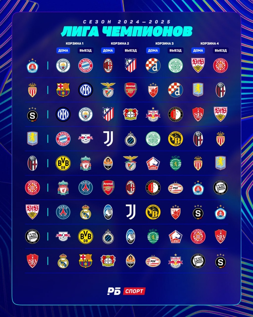 Итоги жеребьевки общего этапа Лиги чемпионов 2024/25