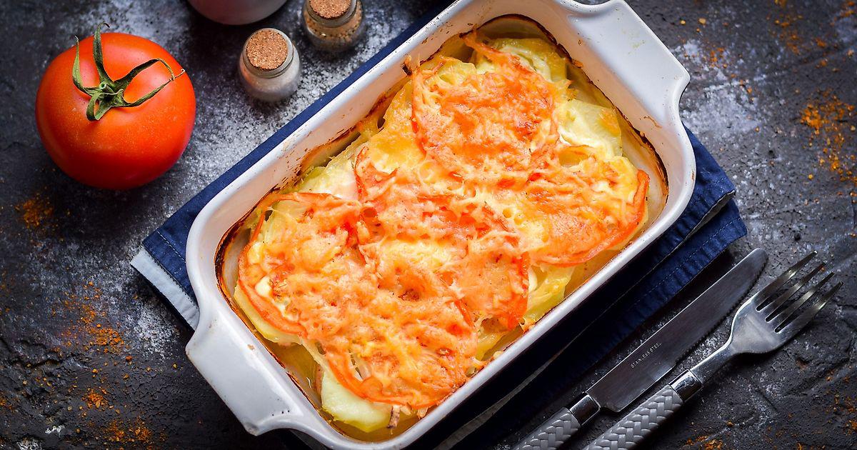 - Посыпьте оставшимся натертым сыром (150 г) и запекайте в духовке, разогретой до 200 градусов, в течение 15-20 минут, пока сыр не расплавится и не подрумянится.