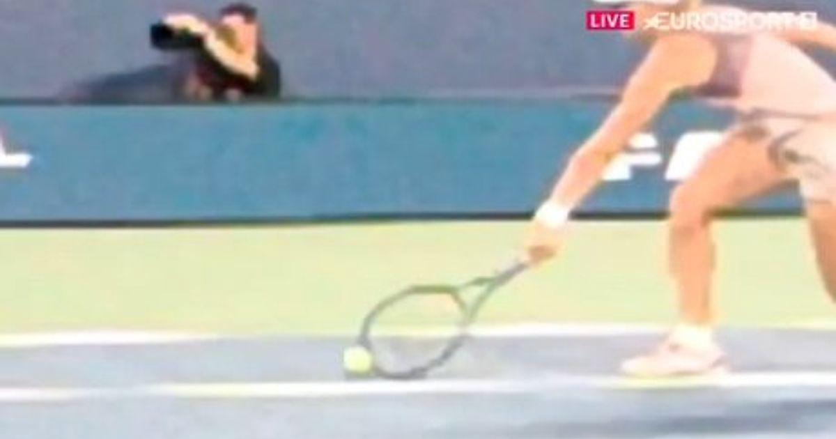 – Что происходит? (В трансляции снова показывают повтор). Все выглядит так, будто она пробил мячом в корт, [и он потом уже отскочил на половину Калинской].