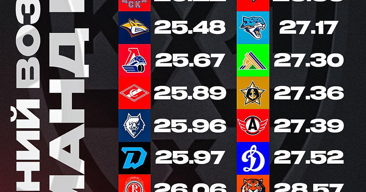 Средний возраст, рост и вес — Клубы КХЛ в разрезе этих цифр