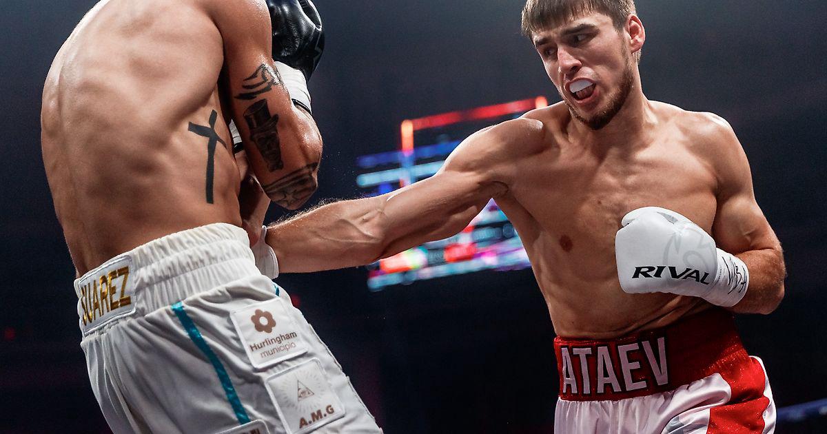 С первых минут Атаев начал присматриваться к сопернику, очень много работал передней рукой, активно используя джеб. Суарез несколько раз пытался выбрасываться на россиянина, за что поплатился во втором раунде. Шарабутдин поймал аргентинца на движении и оформил нокдаун. Суарез встал, но ненадолго: Атаев выбросил правый прямой и вдогонку отправил левый апперкот — Брайан снова рухнул на пол и на этот раз продолжить поединок не сумел.