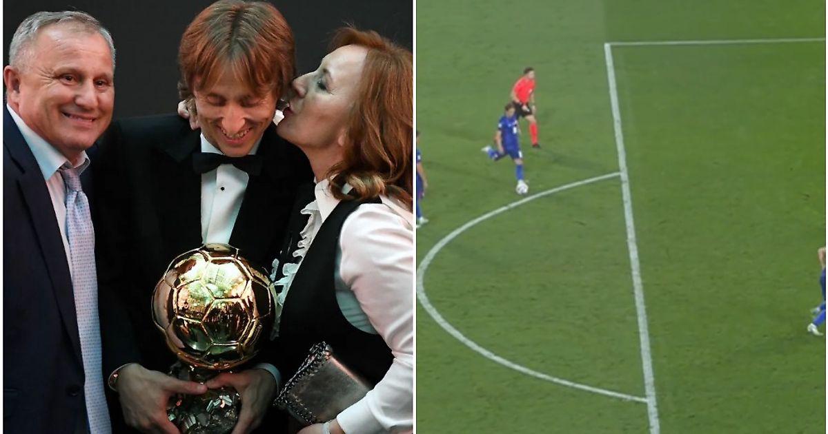 Оказалось, что за игрой с трибун наблюдали родители Модрича − Радойка и Стипе. Кто-то из болельщиков решил снять момент удара со штрафного, но куда важнее для него оказалась реакция мамы и папы Луки.