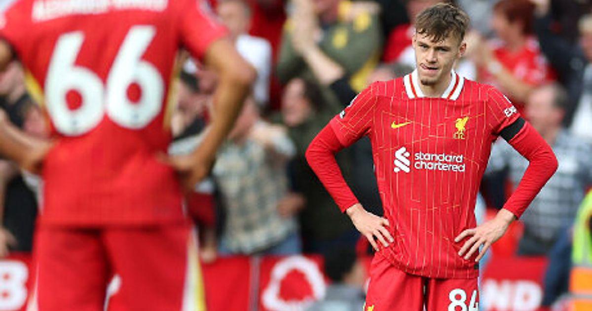 «Ливерпуль» пропустил на 72-й минуте: Энтони Эланга изящно перевел мяч на фланг, Каллум Хадсон-Одои принял, сместился в центр и зарядил в дальний из-за штрафной. Бильярдный отскок от штанги – и 1:0 в пользу «Ноттингема».