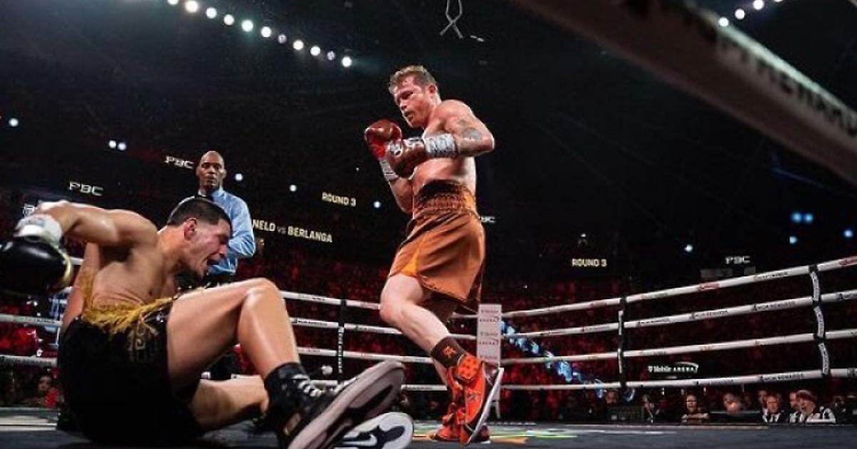 Левый хук Канело - убийственный: мексиканец отправил соперника в нокдаун резким ударом