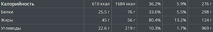 Самое главное – не забывать о принципе умеренного потребления. Не стоит садиться на диету из урбеча (тем более что продукт достаточно жирный), но однозначно стоит добавить его в свой ежедневный рацион (если вы здоровый человек и у вас нет противопоказаний). А ниже вы можете ознакомиться с энергетическим составом блюда.