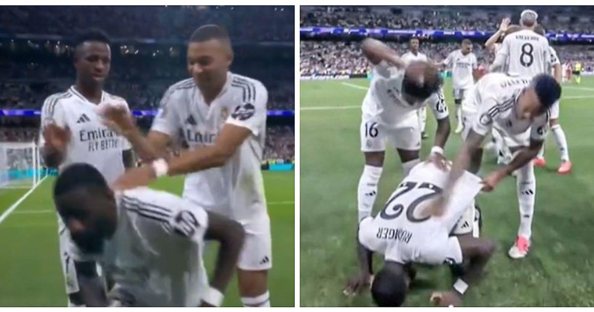📸 Игроки «Мадрида» шлепками поздравили Рюдигера с голом в ЛЧ. Мбаппе забавно объяснил необычное празднование