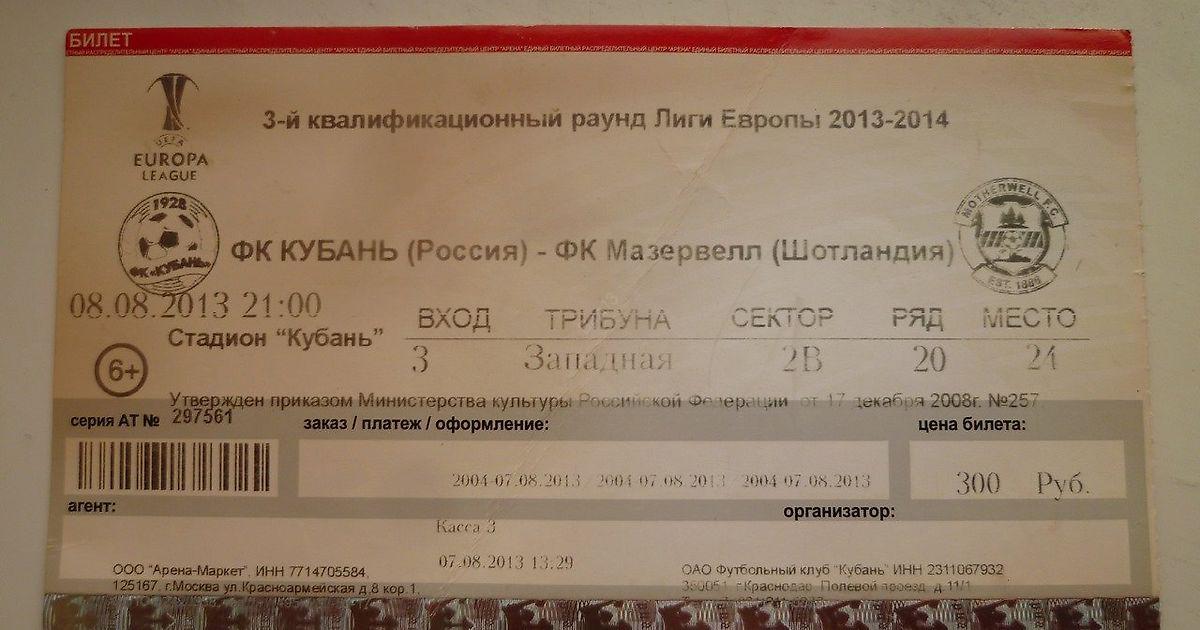 В один из таких дней, облизывая пальцы от сухариков, натыкаюсь на анонс матча ФК «Кубань» - ФК «Мазервелл». Понимаю, что я понятия не имею, как попасть на матч, но желание имею огромное. Сразу бегу к родителям выпрашивать желанную поезду на стадион.